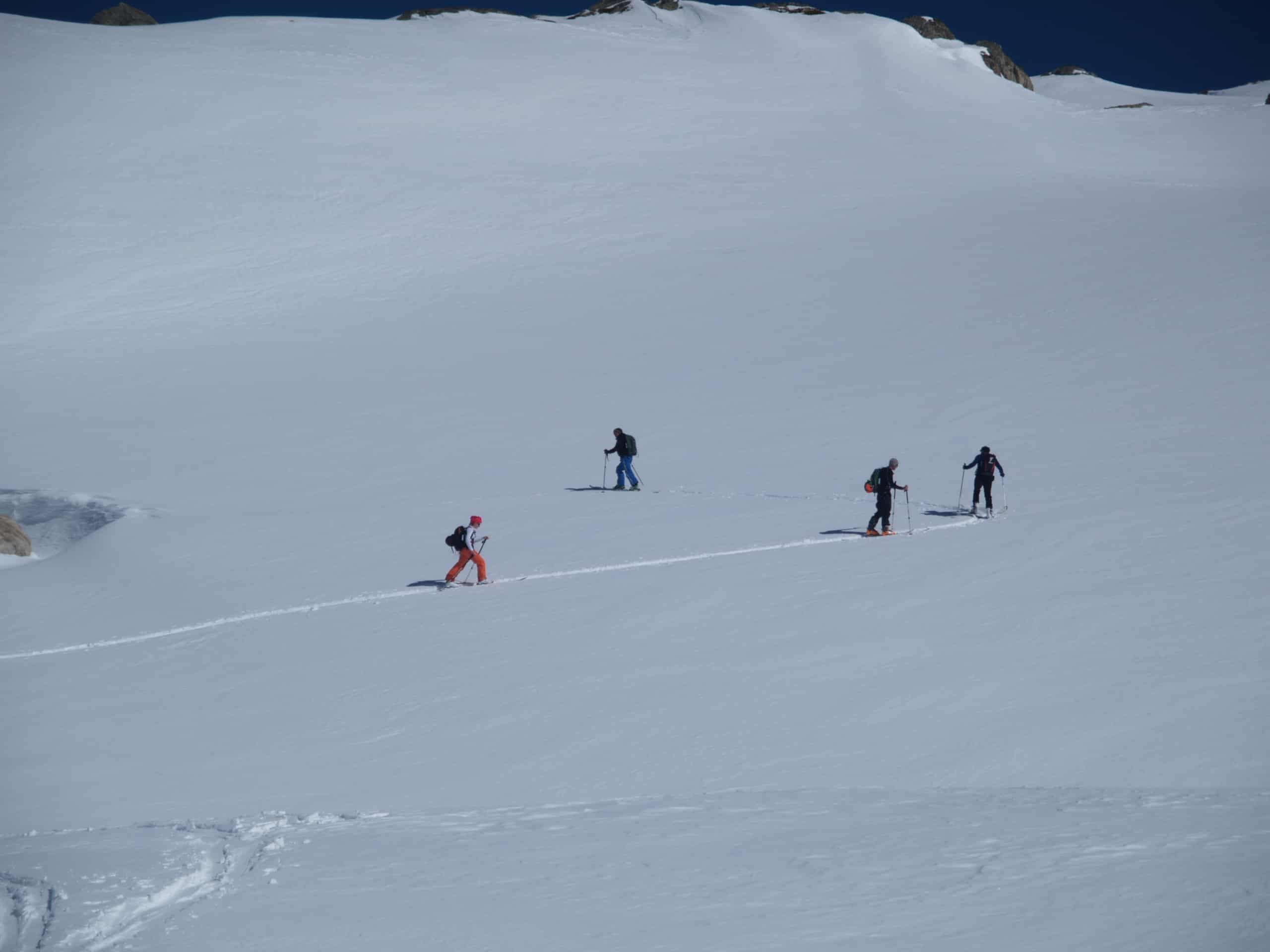 Des del refugi d’Estany Llong pujarem al coll del Portarró d’Espot per després esquiar fins a l’Estany de Sant Maurici, amb vistes excel·lents.