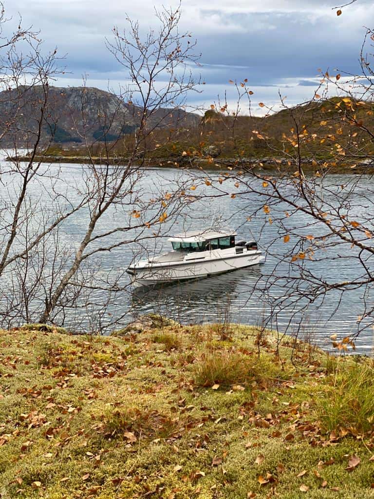 Departure from Henningsvaer at 10 in the morning. Aboard our Axopar 37 boat, we will navigate to Trollfjord.
