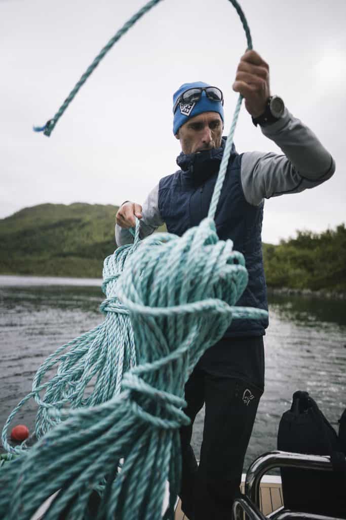 De l’autre côté du ponton, Pål nous attend sur son bateau, le ponton est chargé d’une bonne dizaine d’ancres, de bouées plastiques et autres cordes en nylon. Nous délaissons l’aluminium senteur morue pour une cabine réconfortante. La mer semble se calmer, nous identifions les points GPS sur le moniteur de navigation et prenons la direction du premier spot.