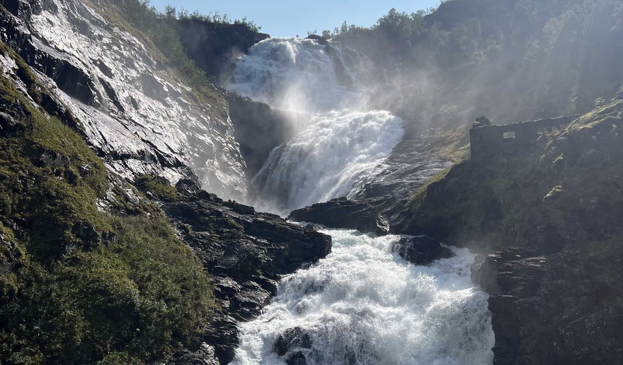 Vous pouvez prendre le ferry de Kaupanger et traverser le fjord des rêves (Sognefjord) jusqu’à Gudvanen ou continuer par la route et voir les célèbres chutes d’eau de Flam. Ici aussi, vous serez conditionné par l’état de la route.